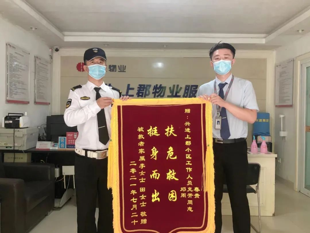 在聽到呼救聲后,上郡物業(yè)服務(wù)中心的秩序班長(zhǎng)周開桂、秩序員鄧克春以及業(yè)主李先生等人迅速趕來,第一時(shí)間撥打了120,采取緊急處置手段,并協(xié)助醫(yī)護(hù)人員及時(shí)將病人送上了救護(hù)車。