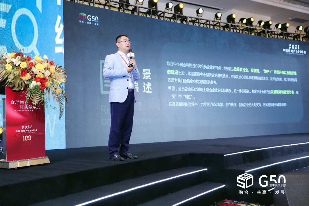 大會現場,G50 商學院院長、博志成總裁吳會鵬發(fā)布了《G50企業(yè)發(fā)展報告》,這是G50專家智庫落地的成果之一,從政策、行業(yè)、投融資,以及地產+的轉型升級,組織生態(tài)的建設等方面展開系列研究,結合G50會員企業(yè)的特點,針對董事長和核心團隊關注的焦點,給會員企業(yè)提供值得借鑒和參考的研究,護航會員企業(yè)的持續(xù)增長。
