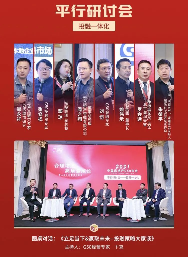 10月30日,本次年會精彩繼續(xù),"投融一體化"、"產品與營銷一體化"、"組織與人才發(fā)展"和"泛地產"四大平行分會場以及平行活動G50集采中標單位考察同時舉行,參會的專家就投融資、產品力提升、地產轉型等話題給企業(yè)提供了很多建議,房地產企業(yè)董事長、高管也講述了當下房企如何修練內功,提升公司競爭力。