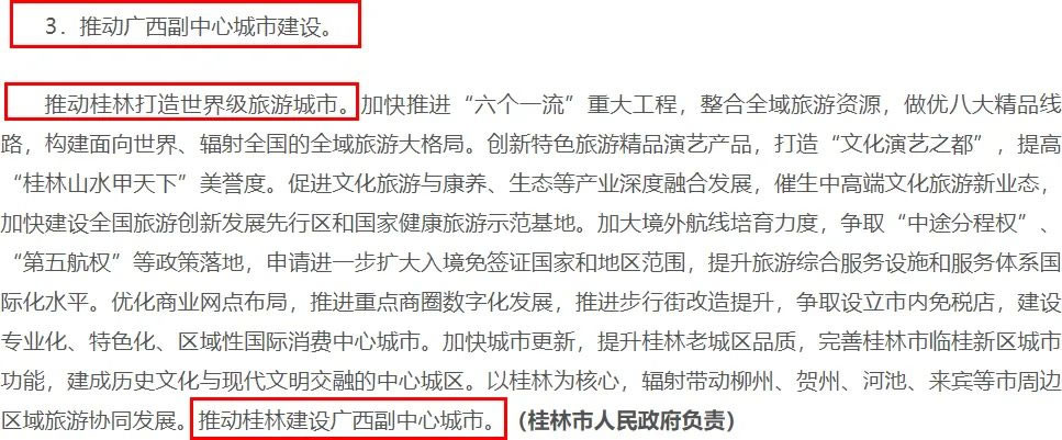 推動(dòng)桂林世界級(jí)旅游城市的打造,加快推進(jìn)"六個(gè)一流"工程,建設(shè)專業(yè)化、特色化的區(qū)域性國(guó)際消費(fèi)中心城市,未來成為一個(gè)城區(qū)常住人口超150萬(wàn)的大城市。