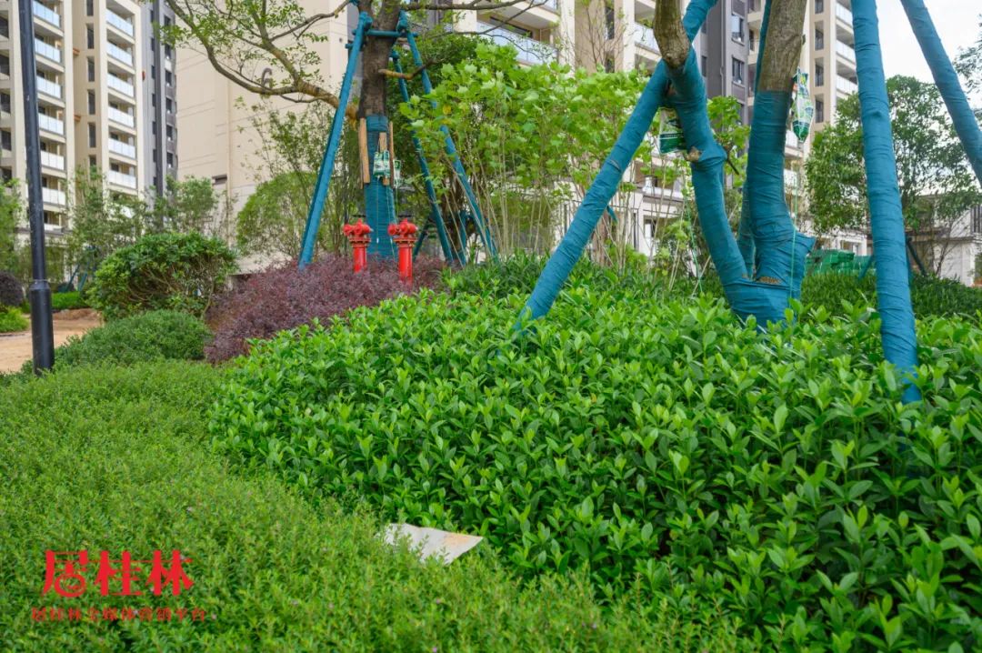 樓棟下方的園林層次感比較豐富,而且不少綠植都是提前種下,現(xiàn)在長勢較好,并且修剪得比較整齊,看著完全不像是新小區(qū)的園林,反而像是交房了一兩年的。