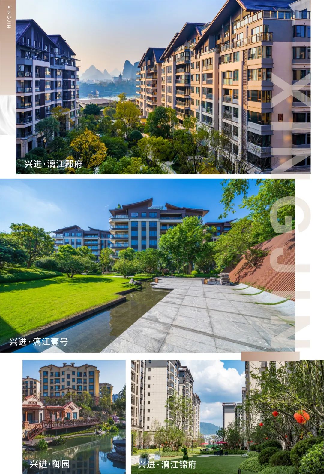 交付項(xiàng)目包括興進(jìn)·御園、興進(jìn)·漓江郡府、興進(jìn)·漓江壹號(hào)、興進(jìn)·景園(陽(yáng)朔)、興進(jìn)·漓江錦府、繁花里,在廣西本土房企中名列前茅。